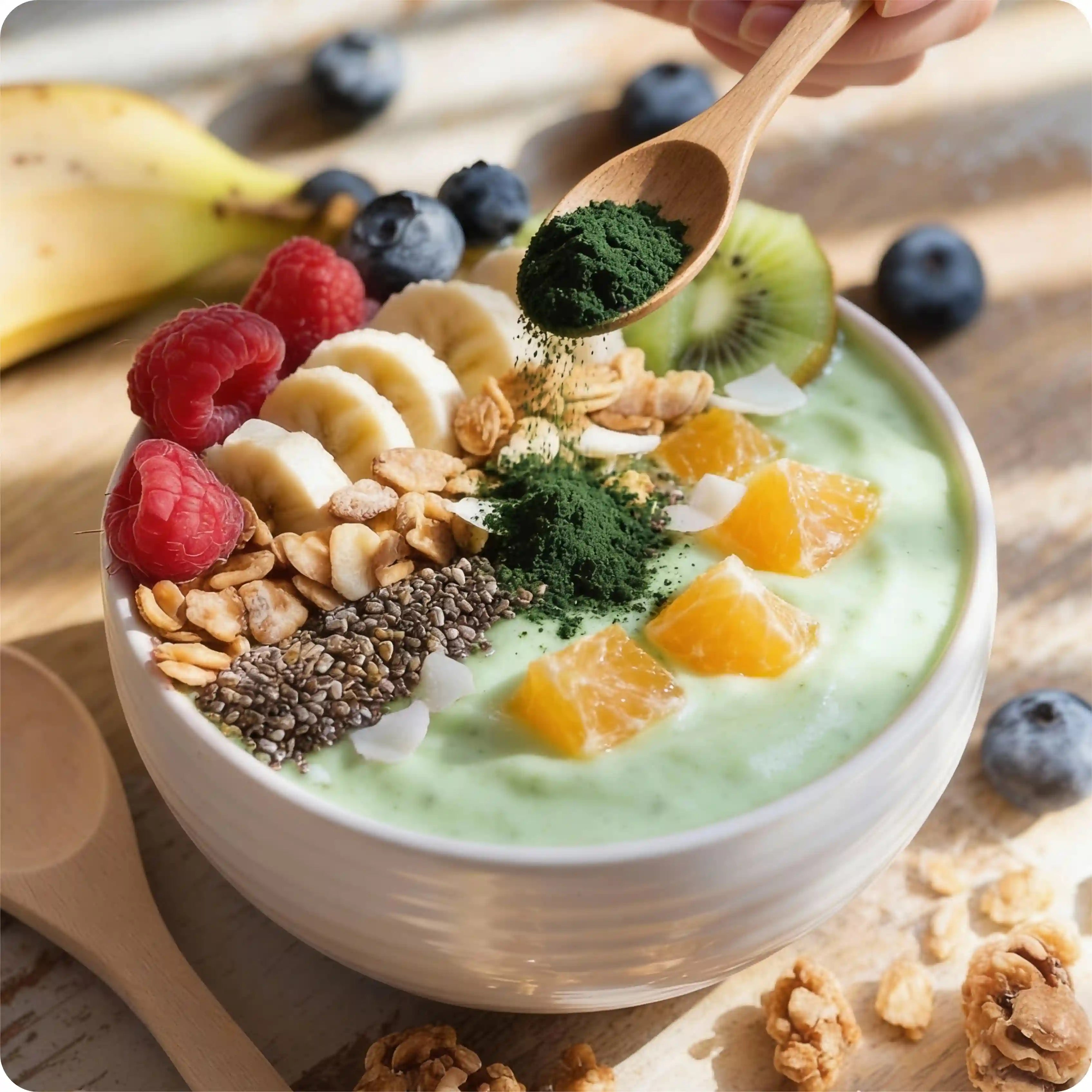 La espirulina es un superalimento natural proveniente de una microalga verde-azulada, reconocida por su alta concentración de nutrientes.